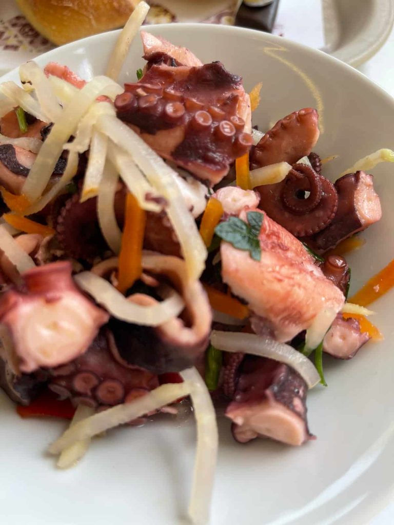 Ma non solo pesce: la cucina siciliana offre anche piatti a base di carne, come la caponata di carne, il polpo in umido e la salsiccia alla brace.